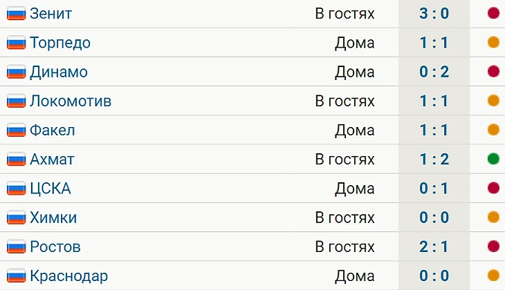 Всего за 10 последних матчей в чемпионате самарцы добились лишь одной победы – над «Ахматом» (2:1) 27 августа. Также на данном отрезке у клуба 4 поражения и 5 ничьих.