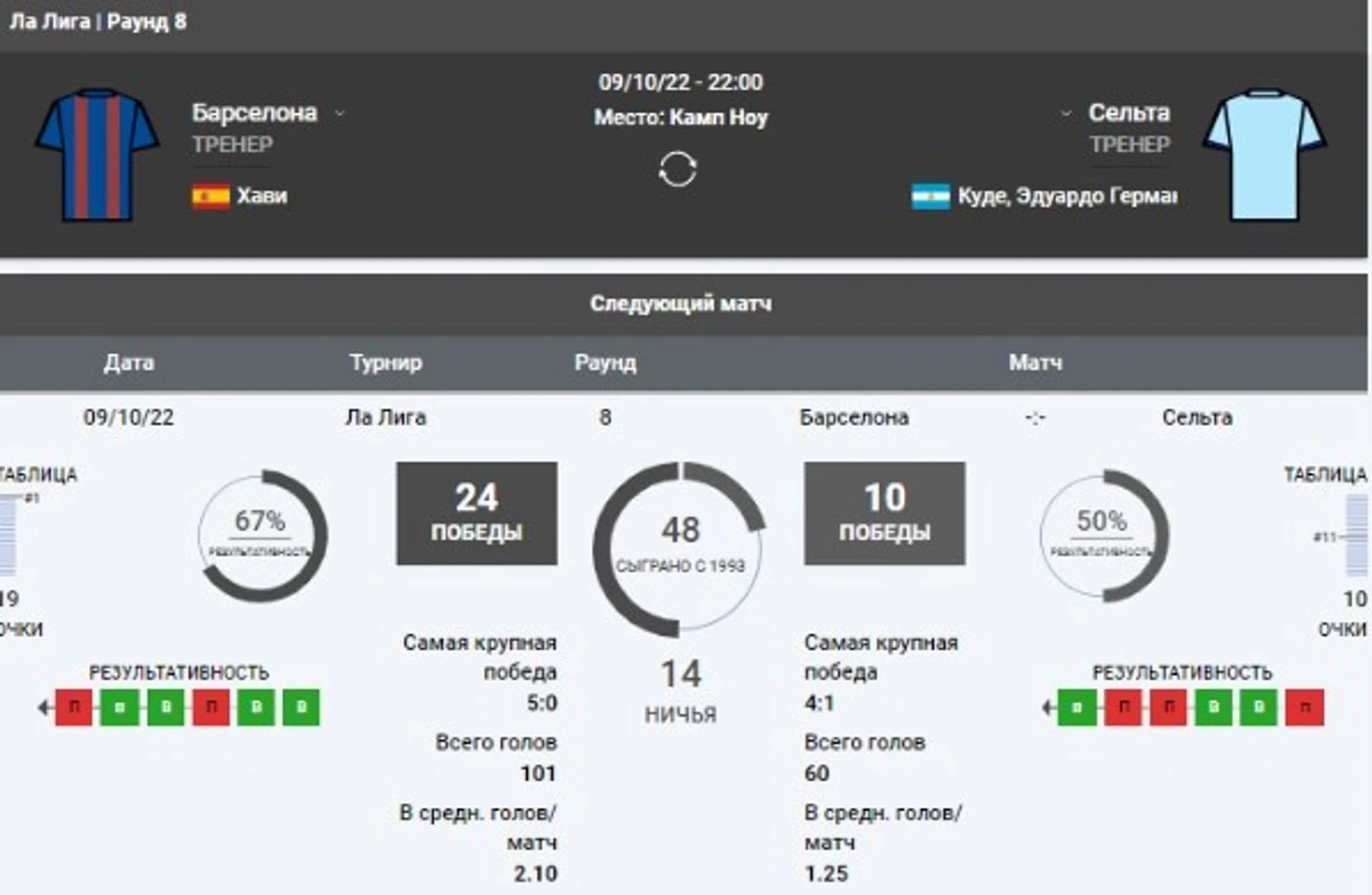 В прошлом сезоне команды встречались сразу после увольнения из «Барселоны» главного тренера Роналда Кумана и выдали настоящий спектакль — игра в Виго завершилась со счетом 3:3.
