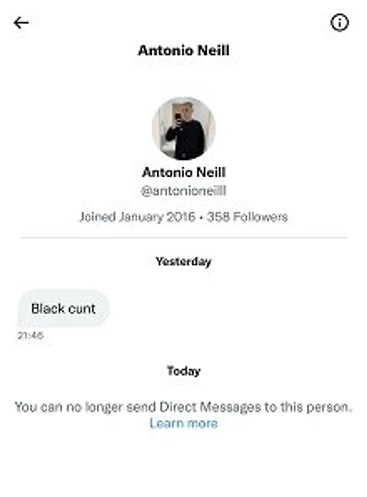 «Черная ##### [вагина]», – написал футболисту молодой человек по имени Антонио Нилл.