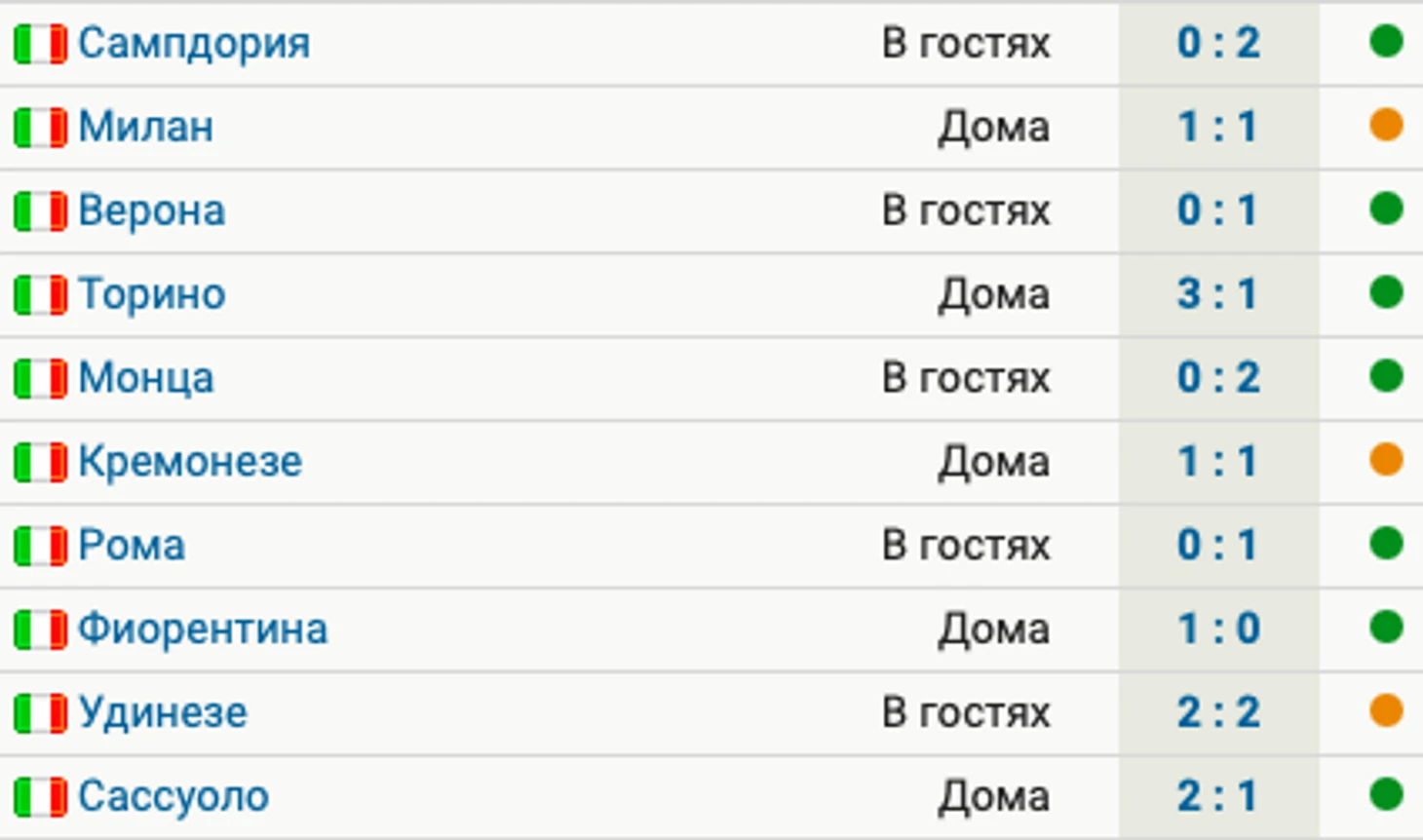 Команда Джан Пьеро Гасперини одержала 7 побед в Серии А и трижды сыграла вничью.