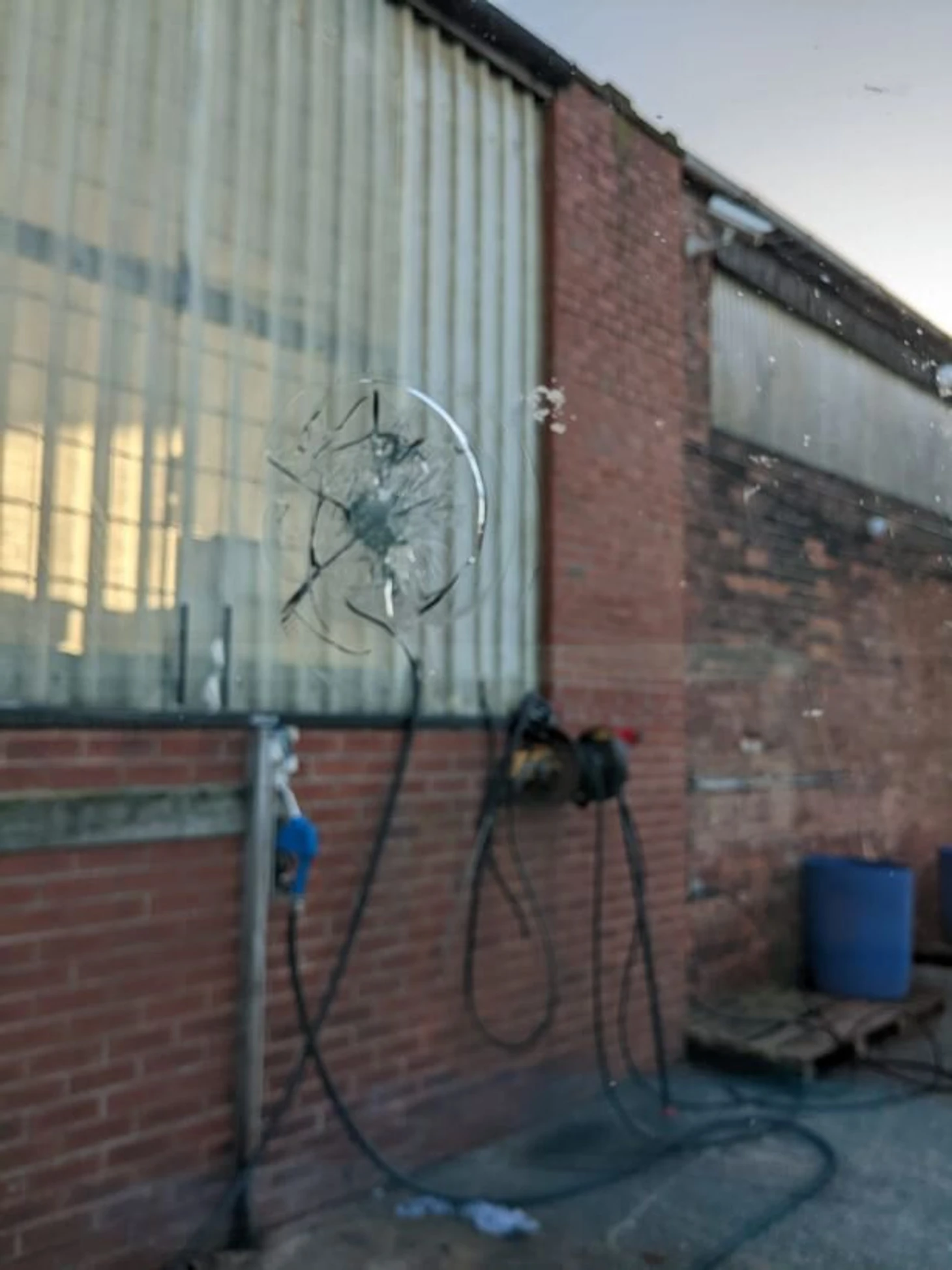 Один из брошенных предметов повредил лобовое стекло автобуса.
