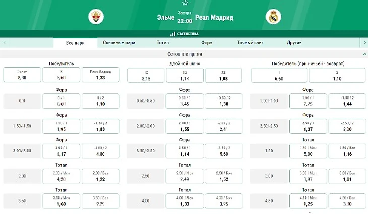 «Эльче» без побед в чемпионате, но в двух последних играх турнира команда не проигрывает. «Реал» дома обыграл «Барселону» и вернул себе первое место в турнирной таблице. Гости явные фавориты встречи. Ниже коэффициенты на игру от БК «Лига Ставок».