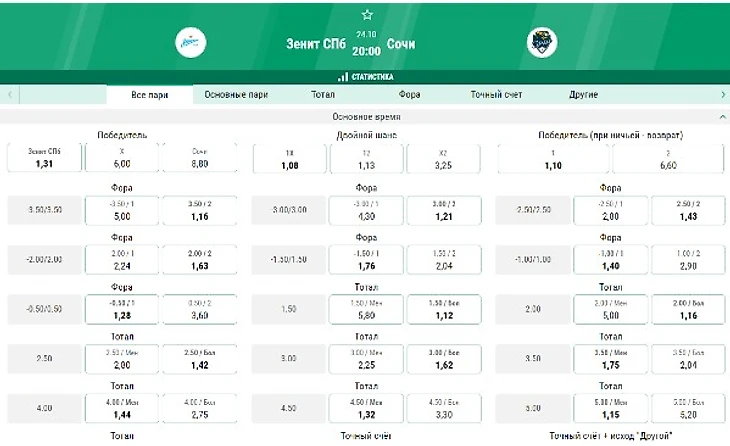 «Сочи» отправляется на выезд в Санкт-Петербург на серии из трех гостевых поражений. «Зенит» не только лидер чемпионата, но и самая лучшая команда турнира по игре на домашней арене. Хозяева явные фавориты матча. Ниже коэффициенты на игру от БК «Лига Ставок».