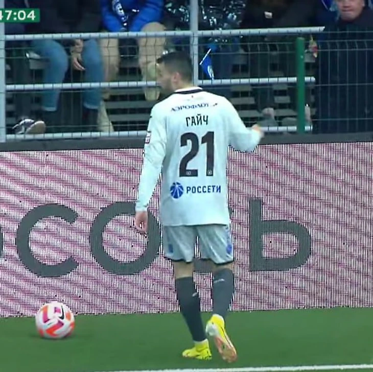 На 55-й минуте арбитр Владислав Безбородов обратил внимание, что Гайич играет не под своим номером и попросил его переодеться.