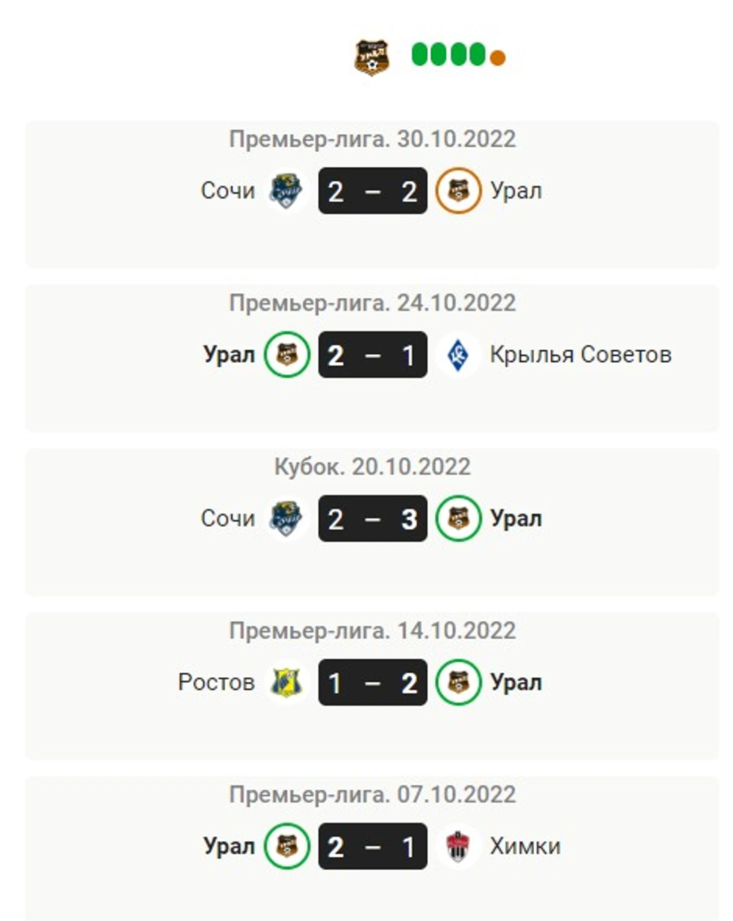 В последней игре первого круга у «Урала» все-таки прервалась победная серия — екатеринбуржцы в гостях поделили очки с «Сочи» (2:2). Гости были близки к продолжению своей серии, но не удержали победный счет, пропустив от защитника сочинцев Муссы Сиссако.