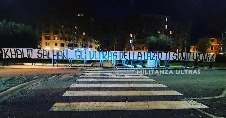 Сегодня болельщики римской команды продемонстрировали баннер с текстом «Халид Салман, ультрас «Лацио» с тобой».
