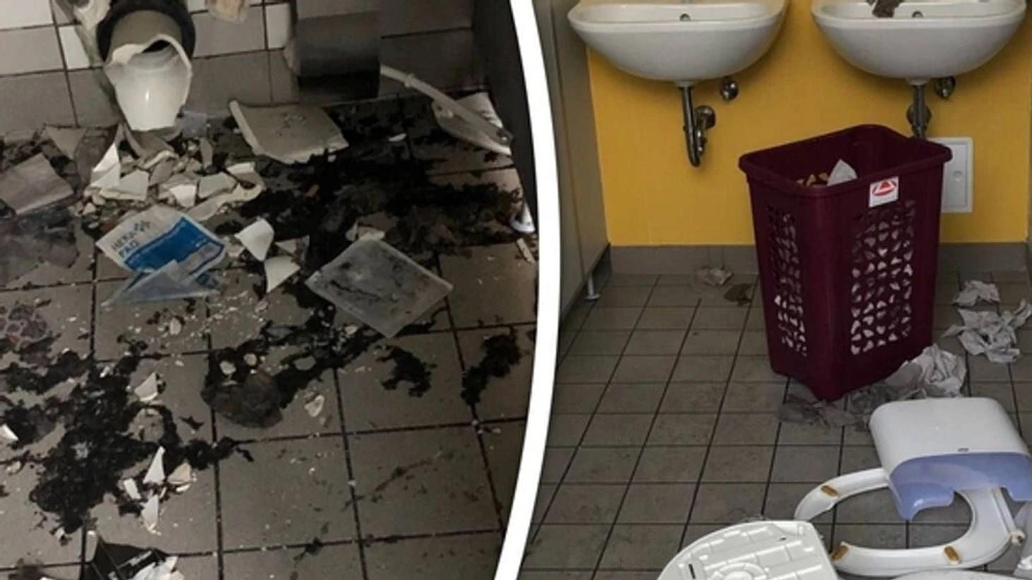 Туалеты и раковины были сорваны со стен и разбиты. Также лопнули водопроводные трубы, затем вода заполнила здание. Гимнастический зал, часть трибуны ледовой арены были повреждены водой.