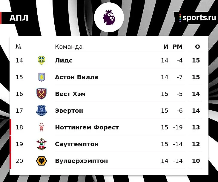 На данный момент «Эвертон» занимает в чемпионате Англии 17-е место с 14 очками.