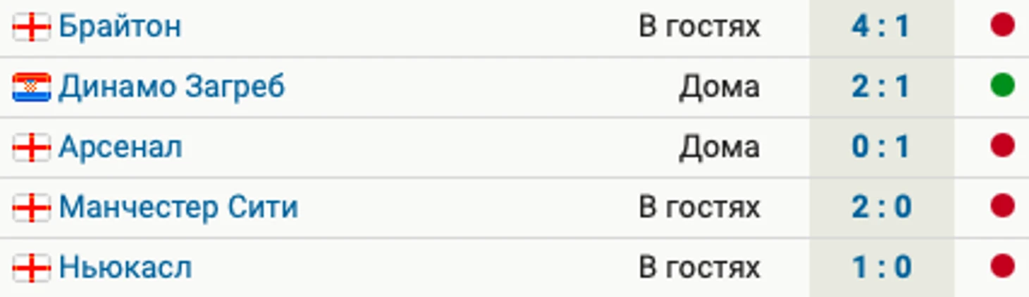 До этого были поражения от «Манчестер Сити», «Арсенала» и «Брайтона». Единственная победа – над загребским «Динамо».