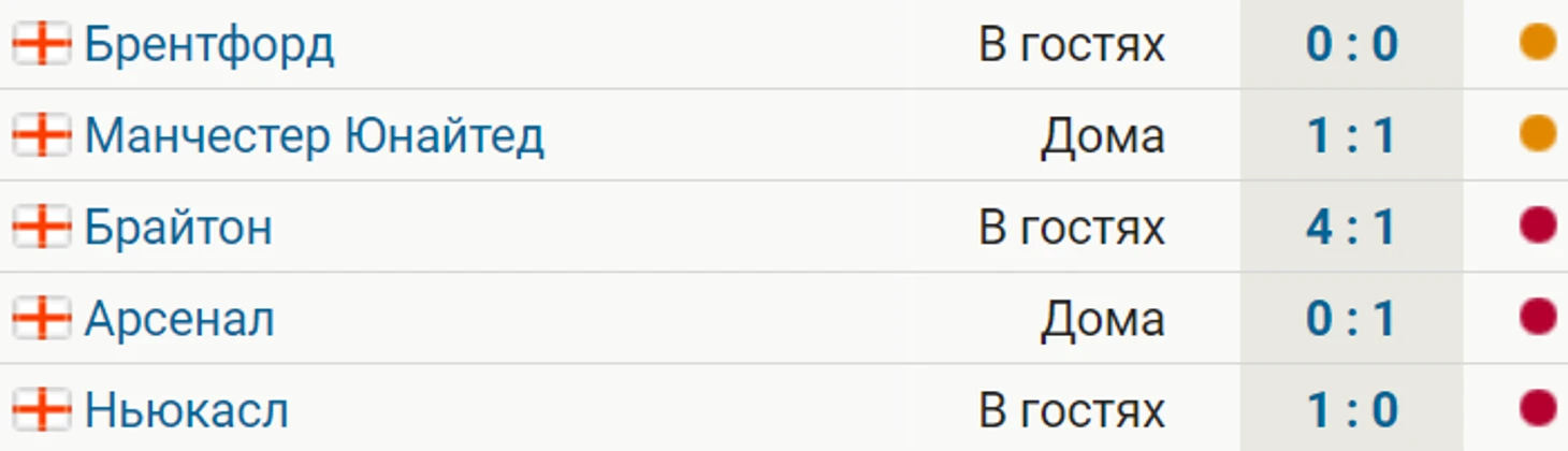 Команда Грэма Поттера не выигрывает в чемпионате Англии уже пять матчей. За это время у нее две ничьих и три поражения, в том числе сегодня от «Ньюкасла» (0:1).
