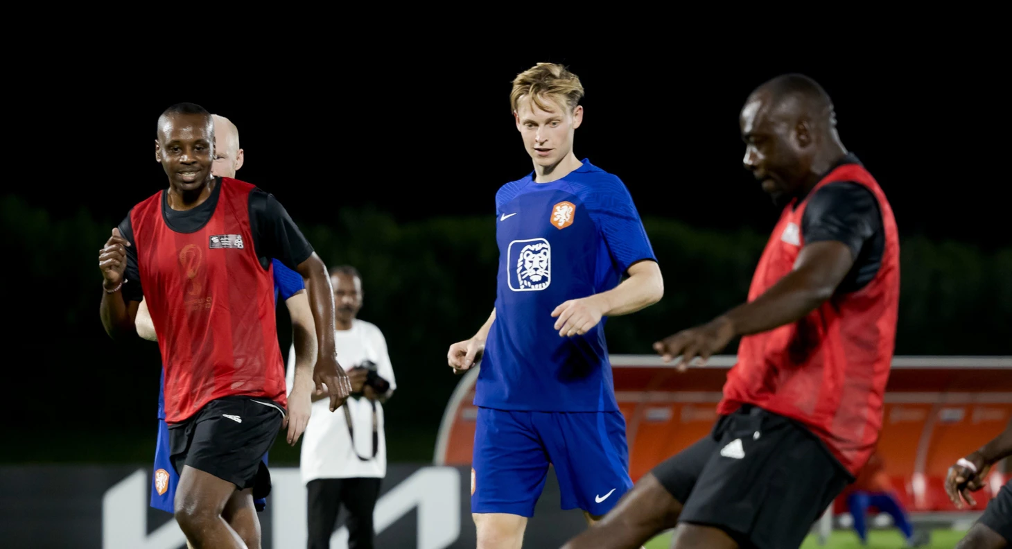 Сборная Нидерландов сыграла с рабочими-мигрантами в Катаре. Один из них уговаривал Де Йонга перейти в «Ливерпуль»
