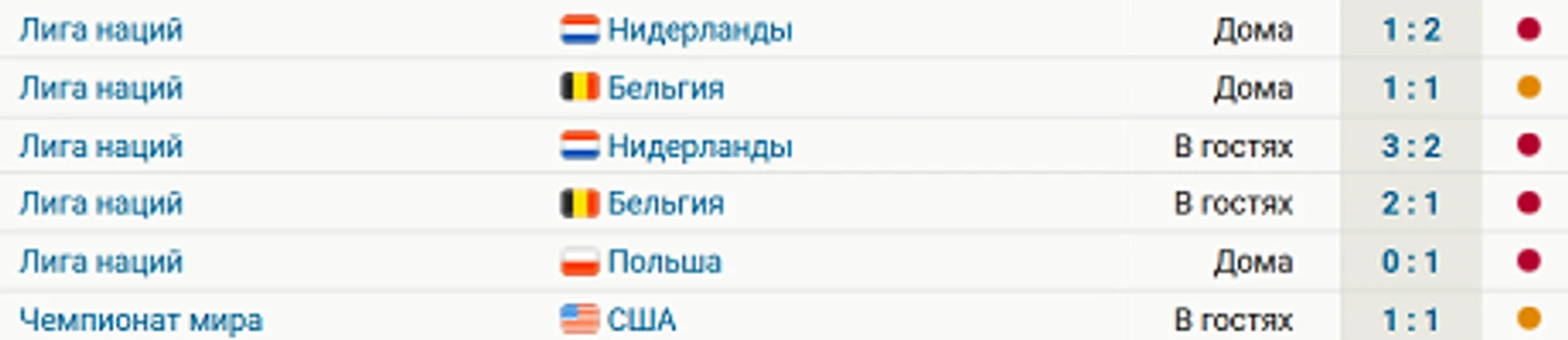 Таким образом, в последних шести матчах у валлийцев четыре поражения и две ничьих.
