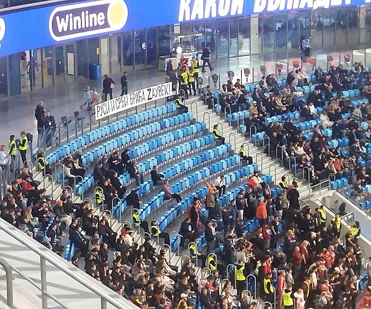 Также на гостевом секторе появился баннер «Руси и срби брача заувек» («Русские и сербы – братья навеки»). Причем в слове «заувек» выделена жирным буква Z.