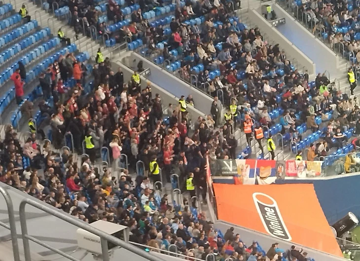 Баннеры с буквами V и Z появились на фан-секторе «Спартака» и «Црвены Звезды» на игре с «Зенитом» в Петербурге