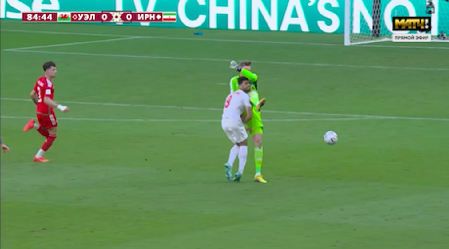 На 85-й минуте нападающий сборной Ирана Мехди Тареми протолкнул мяч мимо Хеннесси, выскочившего из штрафной. Голкипер сборной Уэльса очень высоко поднял ногу и попал Тареми коленом в лицо.