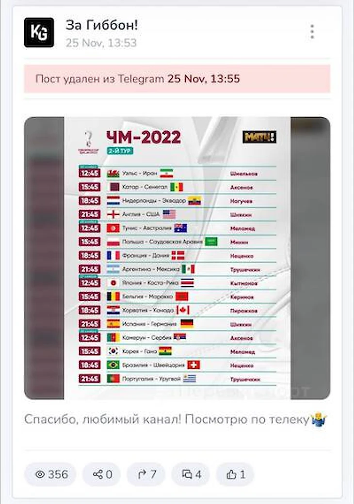 Через две минуты после публикации Генич удалил пост и выложил новый. В нем было сказано: «Отличное расписание!» Через некоторое время эта публикация тоже была удалена.