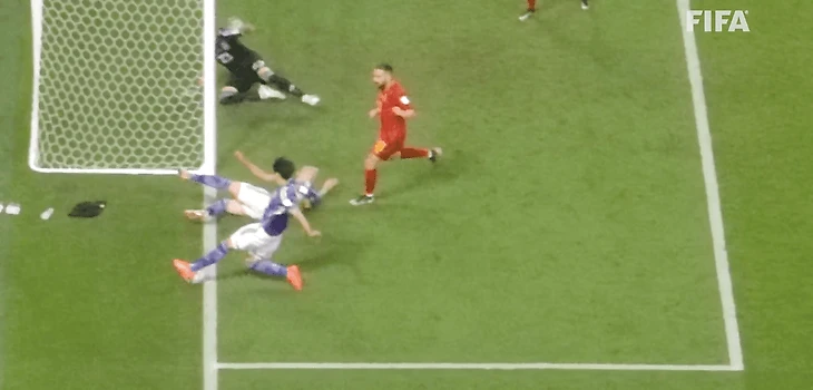 «ВАР проверил второй гол сборной Японии на предмет того, вышел ли мяч за пределы поля. Видеоарбитры использовали изображение с камеры линии ворот, чтобы проверить, находился ли мяч частично на линии или нет.