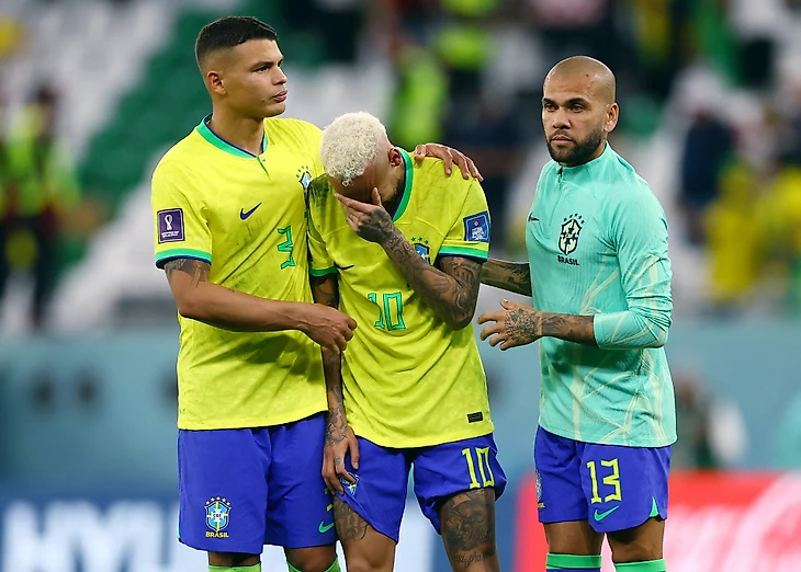 После поражения от Хорватии (1:1, 2:4 по пенальти) в 1/4 финала заплакали Неймар, Антони, Рафинья и Родриго. Форварда «ПСЖ» утешал Дани Алвес.