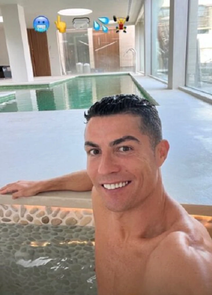 Роналду опубликовал фото у бассейна с пятью эмодзи: 🥶👆🤿💦🏋️♂️