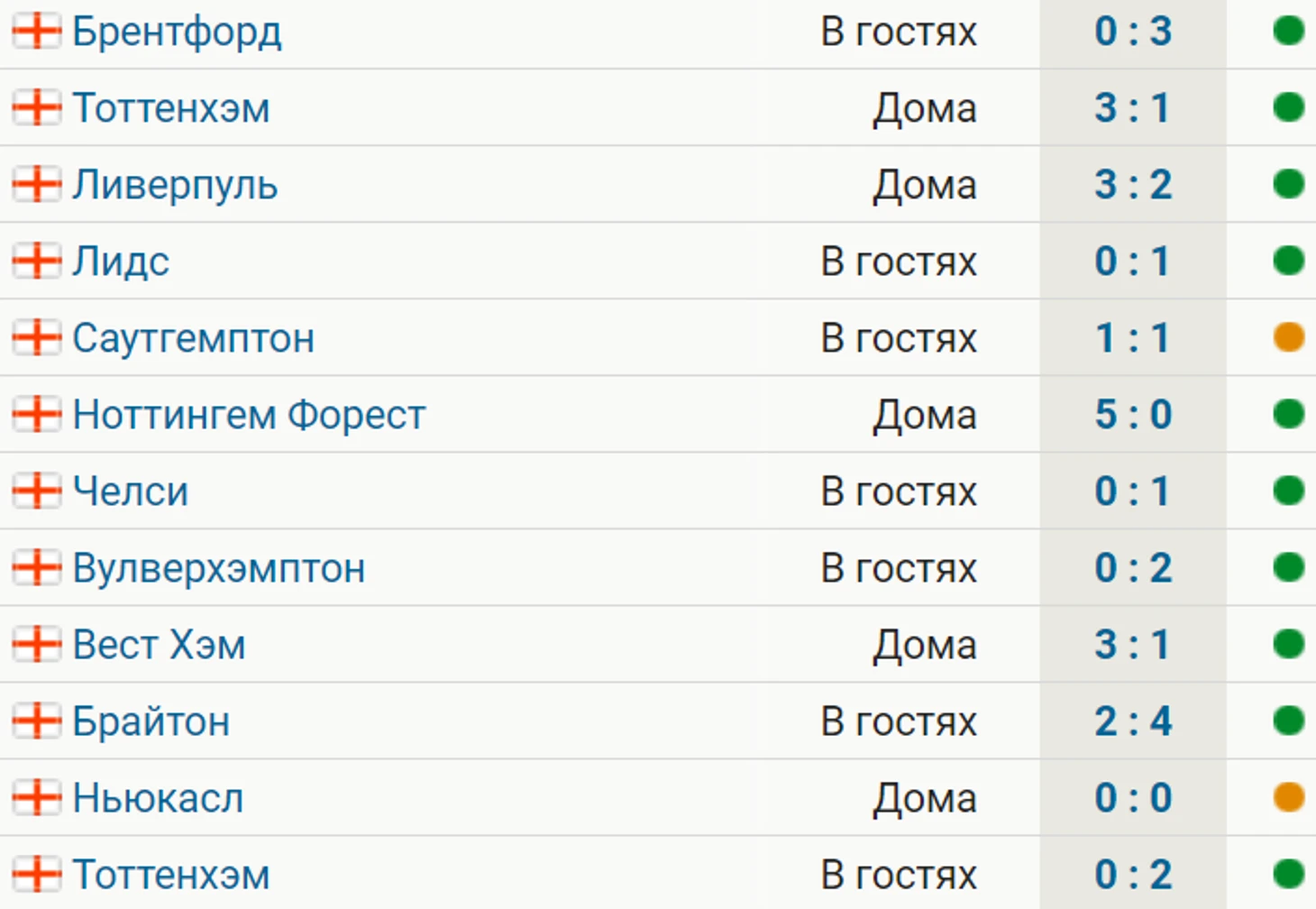 В последний раз «канониры» проигрывали в АПЛ 4 сентября – в гостях у «Манчестер Юнайтед» (1:3). С тех пор у них 10 побед и 2 ничьих, общий счет – 28:7.
