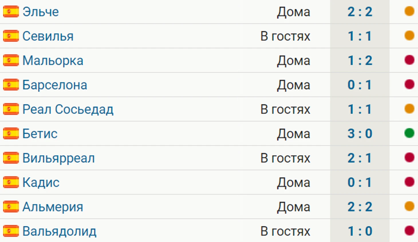 На данный момент команда занимает 14-е место, набрав 20 очков. В следующем туре чемпионата она выступит в гостях у «Реала».