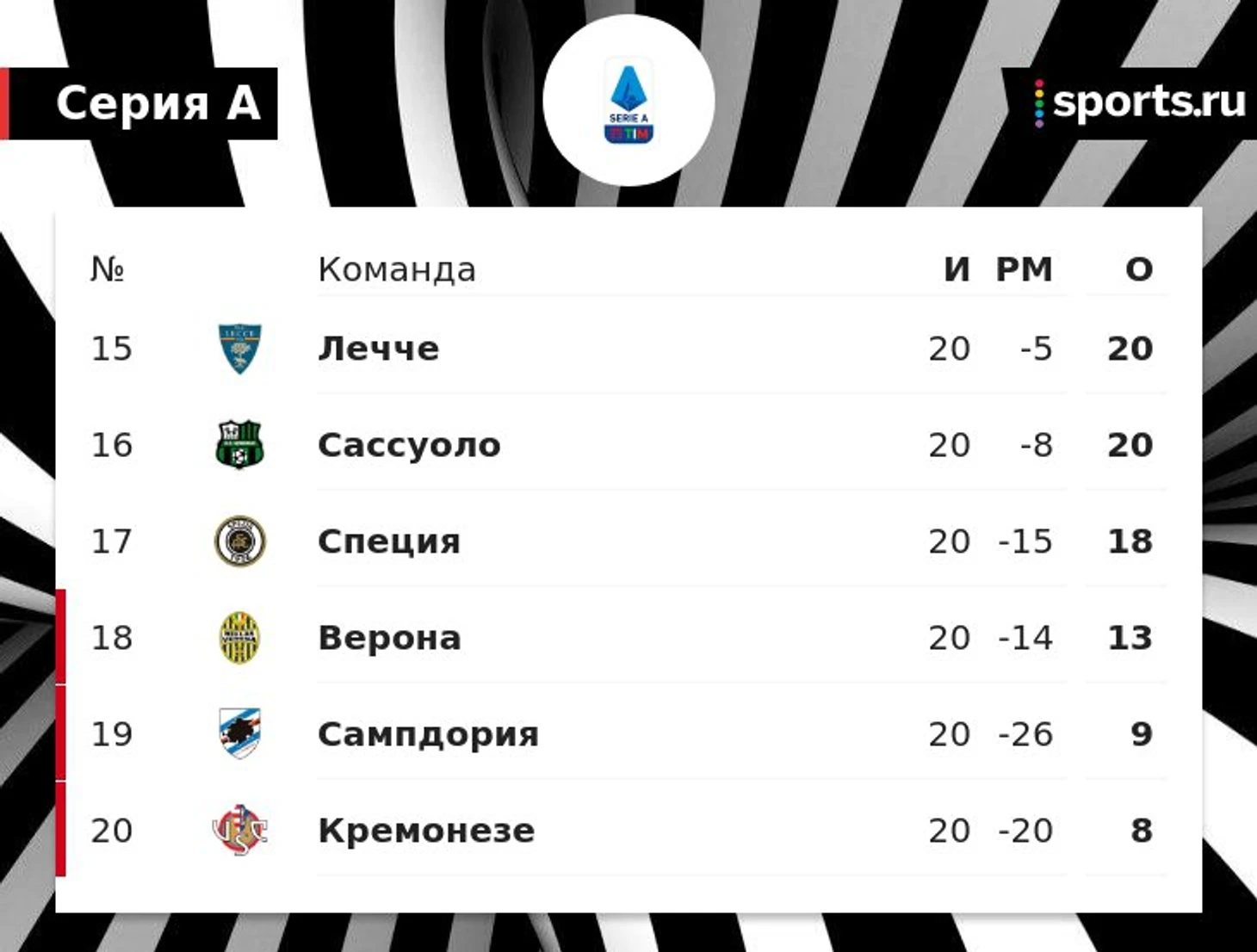 На данный момент «Сампдория» идет в Серии А на предпоследнем месте, набрав 9 очков за 20 туров.