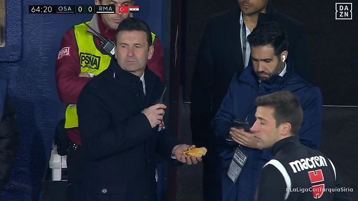 Родриго передал булочку главному арбитру Хосе Мунуэре Монтеро. Вероятно, этот инцидент внесут в протокол. Судья передал булочку сотруднику стадиона с рацией.
