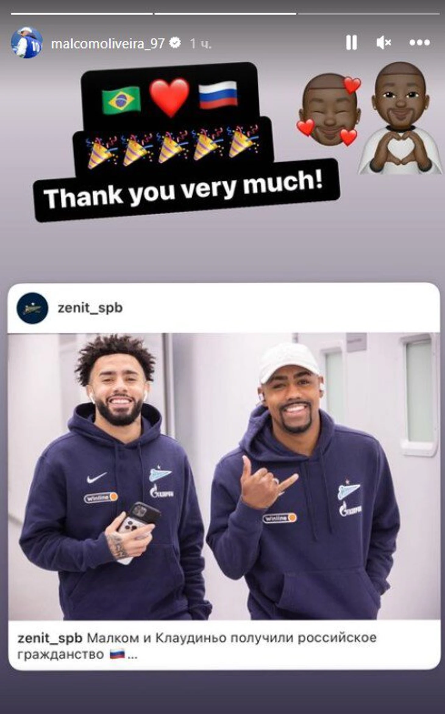 Малком о гражданстве России: «Большое спасибо! 🇧🇷❤🇷🇺🎉»