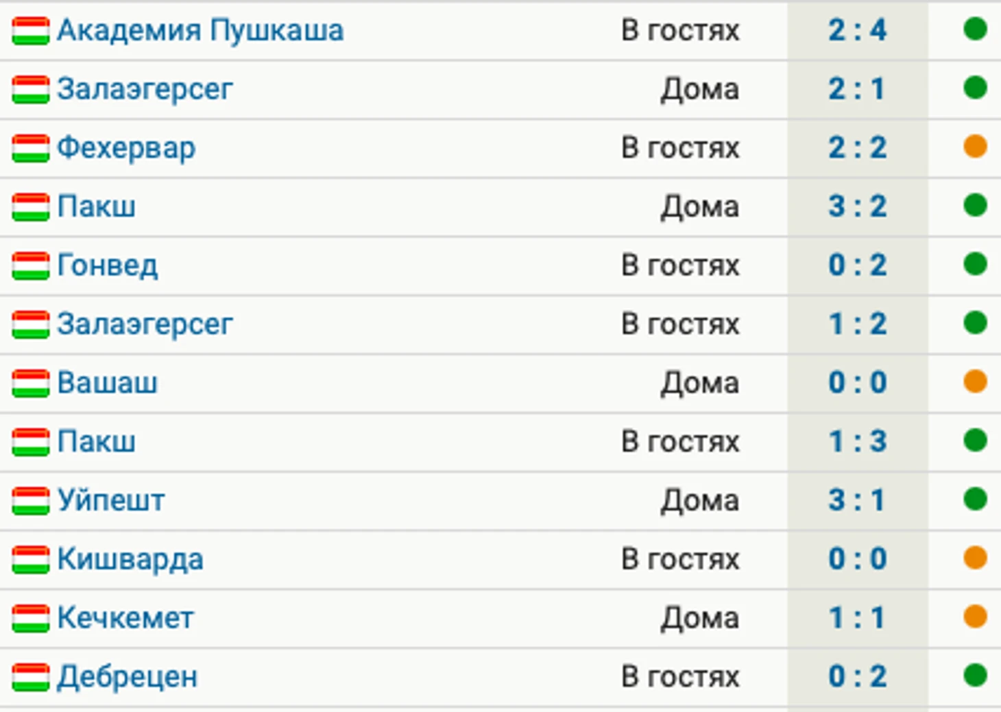 Команда Черчесова, таким образом, не проигрывает 12 матчей подряд в лиге Венгрии.