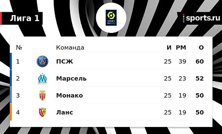 Далее расположились «Монако» Александра Головина и «Ланс», набравшие по 50 баллов. Клуб из княжества сегодня был разгромлен «Ниццей» (0:3), а команда из региона О-де-Франс сыграла вничью с «Монпелье» (1:1).