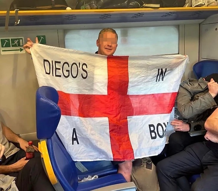 Как передает Сorriere Dello Sport, фанат был сфотографирован в поезде с английским флагом, на котором размещена надпись о смерти экс-форварда «Наполи» Диего Марадоны: «Диего сыграл в ящик».