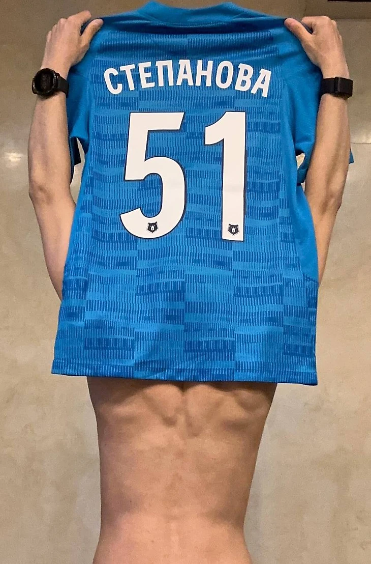 После победы «Зенита» Степанова опубликовала в социальных сетях фото с футболкой «Зенита».