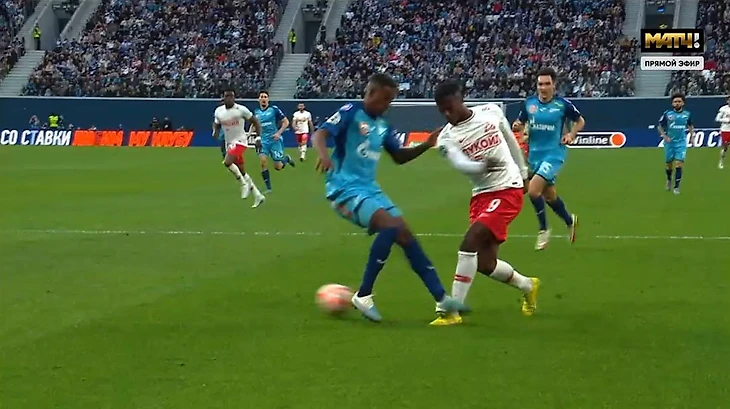 Сперва защитник «Зенита» Роберт Ренан наступил в своей штрафной на ногу форварду «Спартака» Кейта Бальде, а затем Далер Кузяев толкнул Романа Зобнина в центре поля.