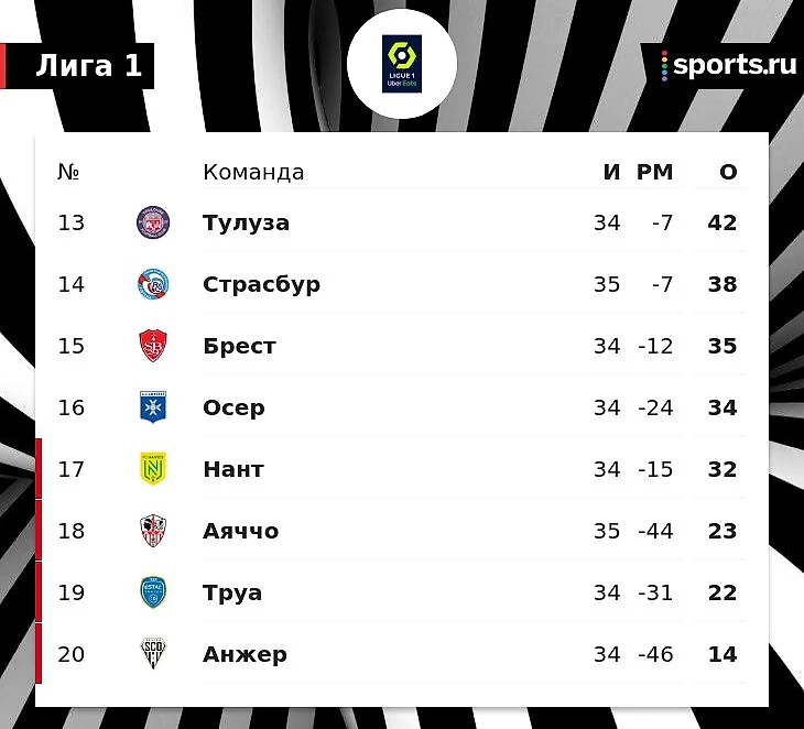 Отметим, что «Нант», занимающий 17-е место в таблице, борется за выживание в Лиге 1.