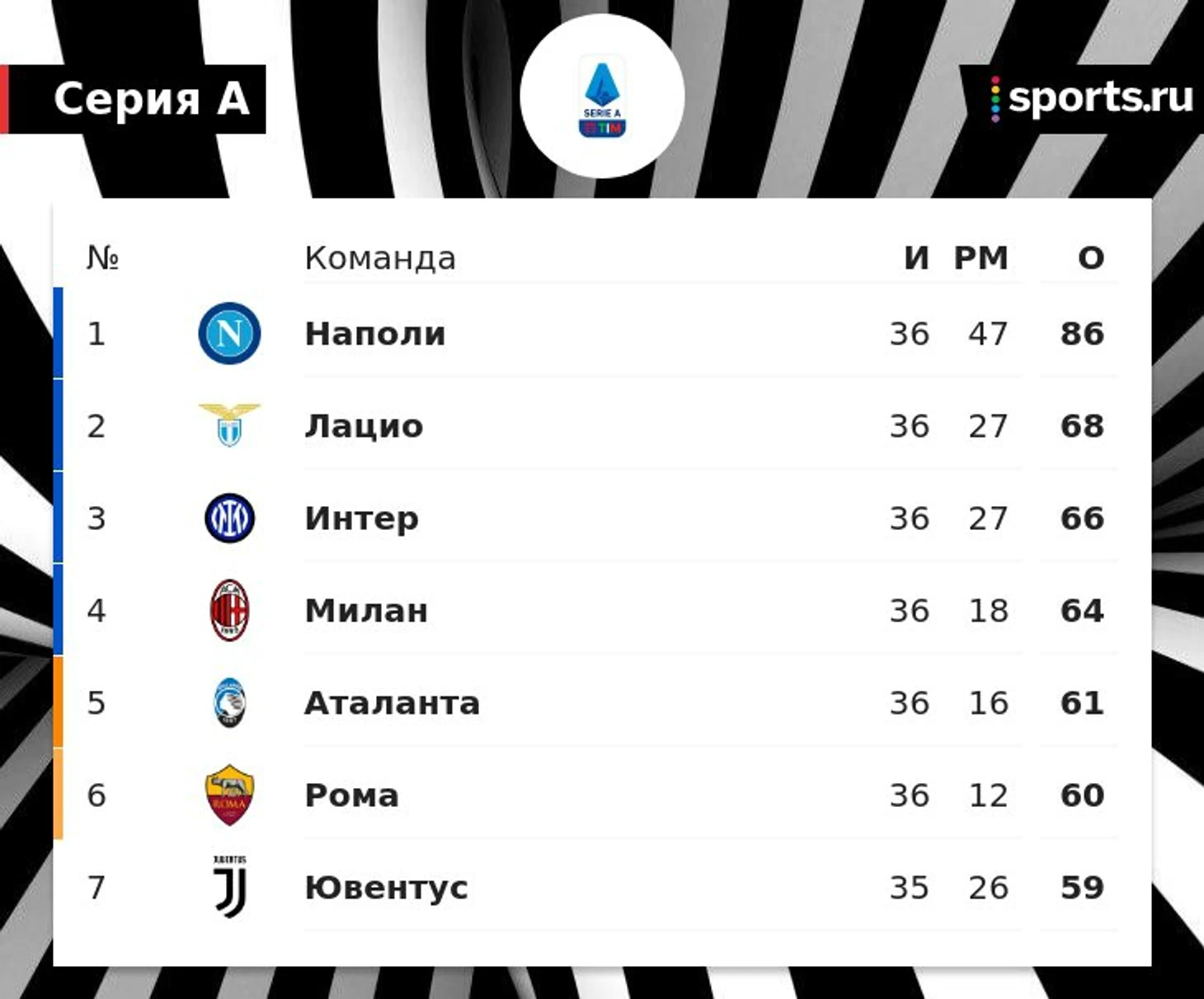 «Бьянконери», на счету которых было 69 баллов, шли на втором месте в Серии А. После вступления решения в силу туринцы опускаются на 7-ю строчку. До зоны Лиги чемпионов – 5 очков. Команде осталось провести три матча.