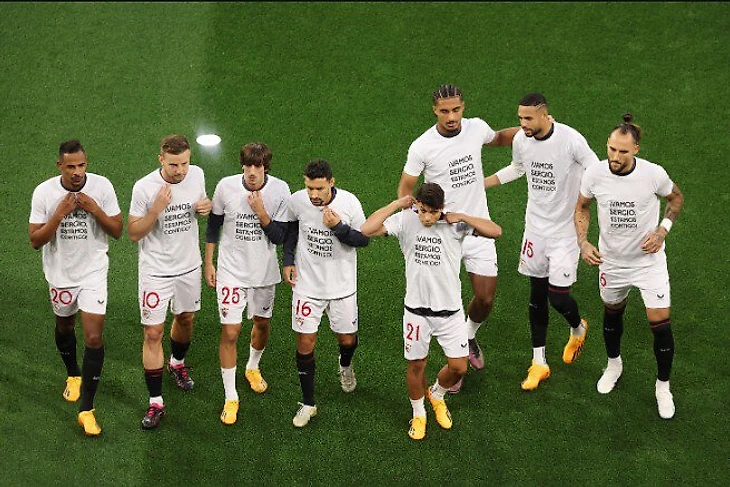 Перед матчем финала Лиги Европы против «Ромы» игроки «Севильи» вышли на поле в футболках с надписью: «Вперед, Серхио! Мы с тобой!»