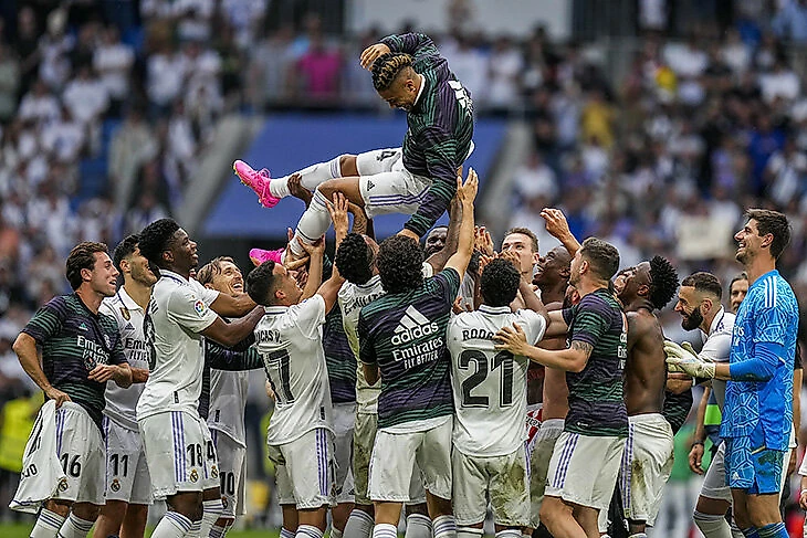 После матча игроки «Реала» попрощались с покидающими клуб партнерами по команде, качая каждого из них на руках.