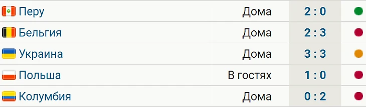 После этого она потерпела три поражения (от Бельгии, Польши и Колумбии) и сыграла вничью с Украиной. Все встречи были товарищескими.