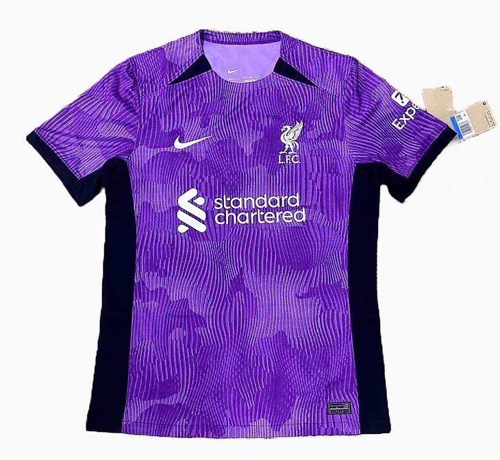 Появились фото третьей формы «Ливерпуля». Она фиолетовая с черными вставками