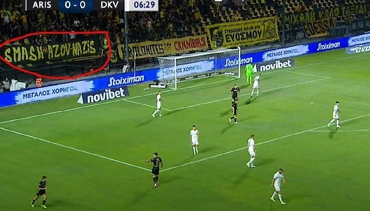 «Разгромите нацистов «Азова»*. Ультрас «Ариса» вывесили баннер на игре с киевским «Динамо»