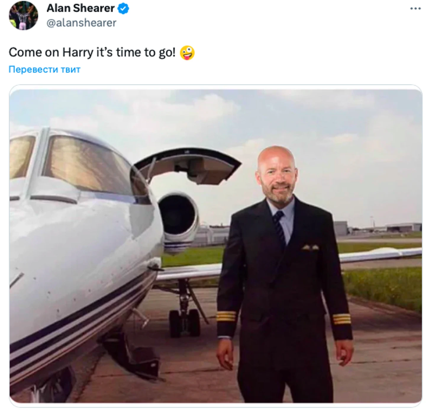 «Давай, Харри, пора лететь! 🤪» – написал экс-форвард «Ньюкасла» в твиттере, прикрепив свое фото в образе пилота самолета.
