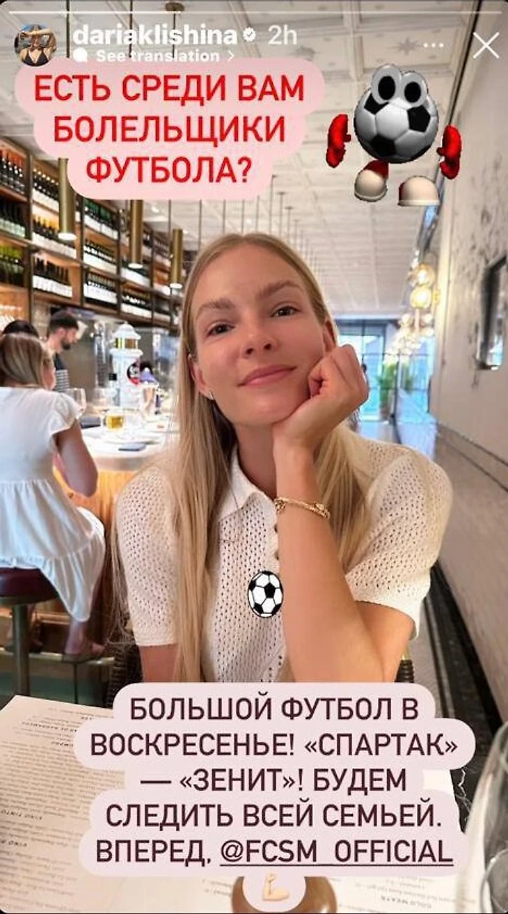Дарья Клишина: «Вперед, «Спартак». Будем следить всей семьей. Большой футбол в воскресенье!»