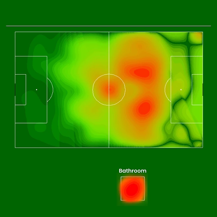 Де Рон выложил свою тепловую карту в матче с «Ракувом», отметив на ней туалет. Так он объяснил, почему убежал с поля