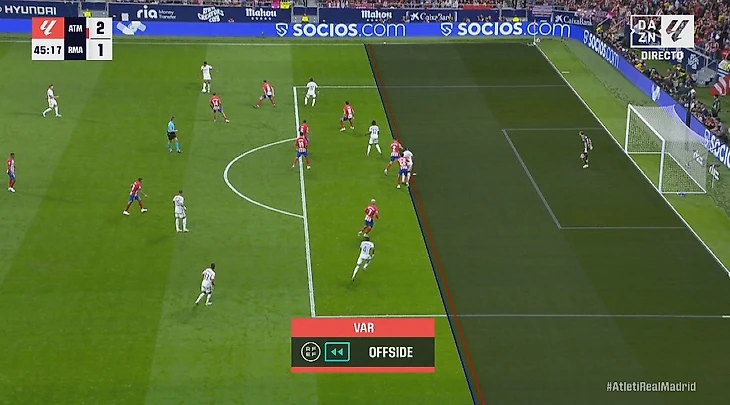 Хавьер Альберола Рохас сразу просигнализировал о том, что взятие ворот засчитано не будет. Таким образом, «Реалу» не удалось сравнять счет, на перерыв команда ушла при 1:2 в пользу «Атлетико».