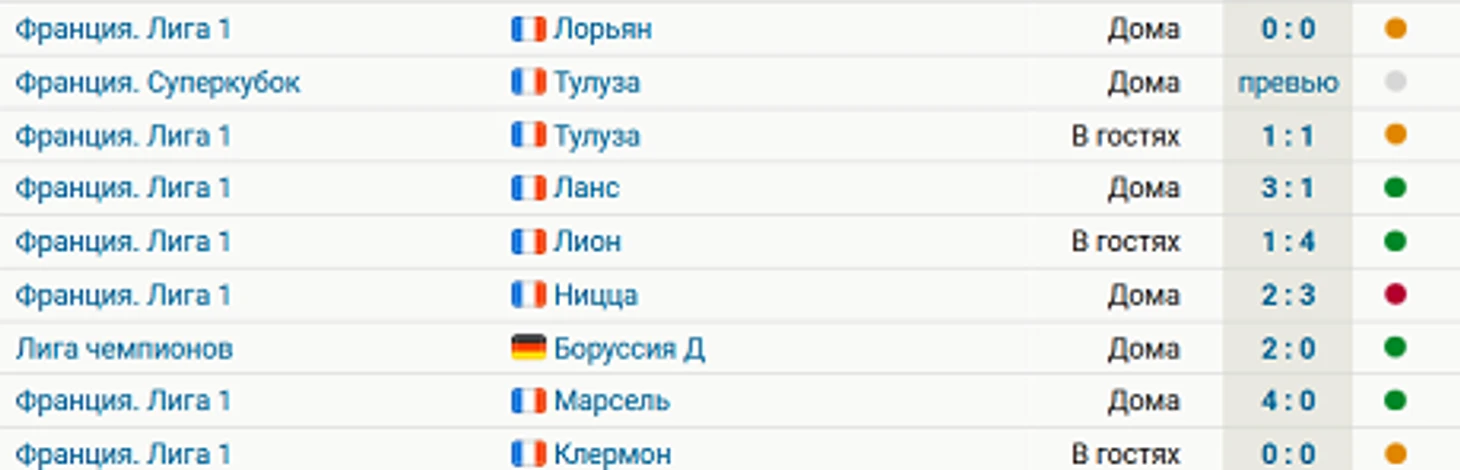 В Лиге 1 «ПСЖ», имея 12 баллов, занимает второе место и может опуститься ниже по итогам тура. «Клермон» идет 17-м, набрав 2 очка.