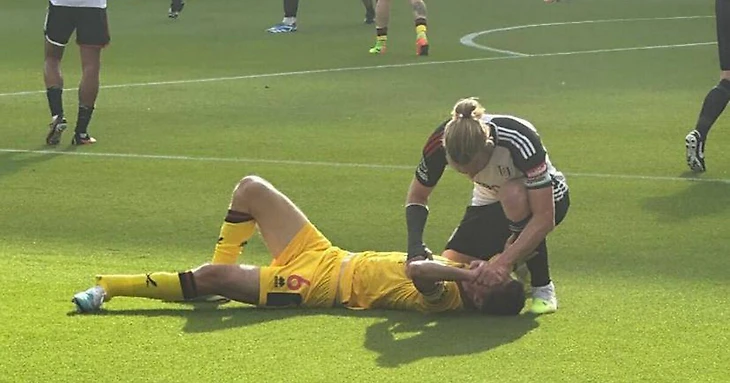 Защитнику оказывали помощь на протяжении примерно 10 минут. Покидая поле на носилках, он поднял вверх большой палец.