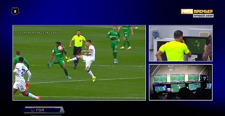 Арбитр Павел Кукуян после просмотра ВАР отменил гол полузащитника «Рубина» Николы Чумича в матче 12‑го тура Мир РПЛ.