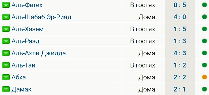 За последние 8 матчей клуб из Эр-Рияда выиграл 7 раз и один раз сыграл вничью. Форвард Криштиану Роналду за это время отметился 11 голами, в том числе в сегодняшнем матче.