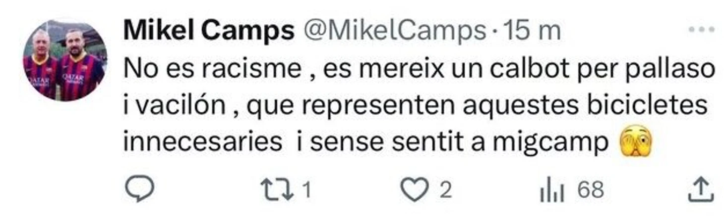 Микель Кампс написал твит с критикой в адрес игрока «Реала» по ходу матча Лиги чемпионов с «Брагой» (2:1), но через несколько минут удалил его.