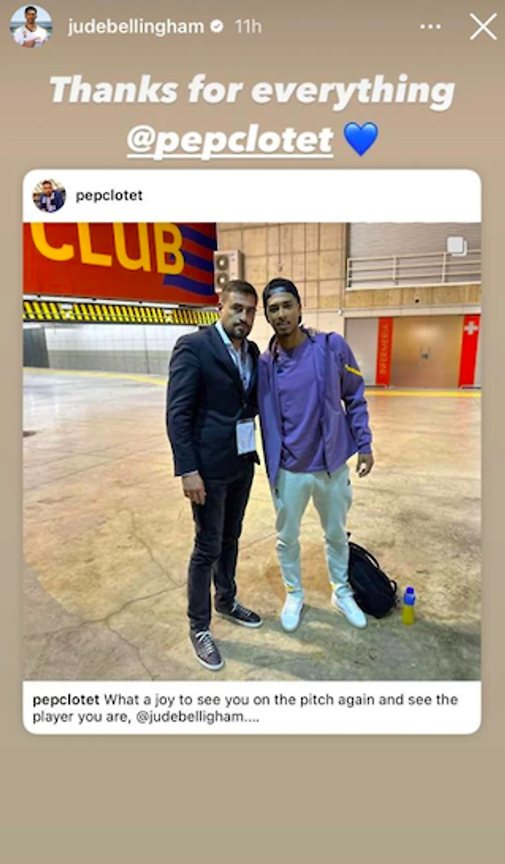 «Спасибо за все, Пеп Клотет», – написал в ответ Беллингем.